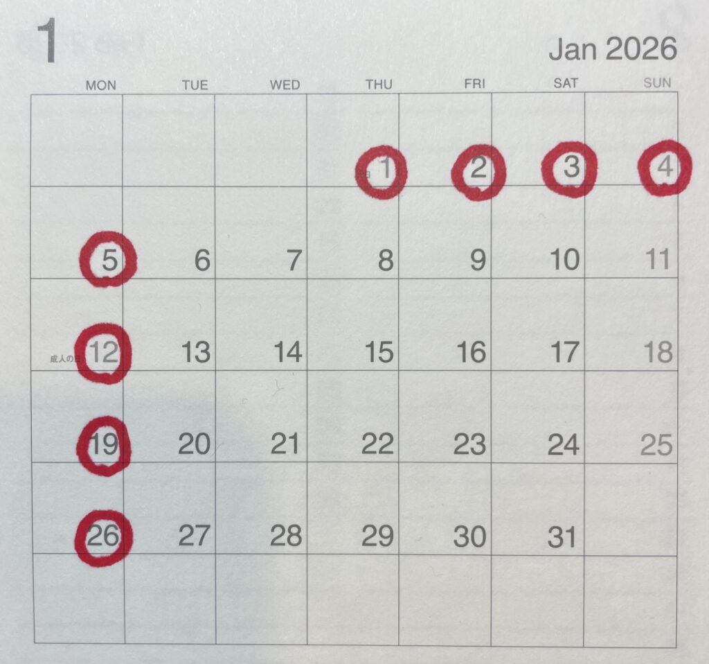 🎌お正月・1月の定休日のお知らせ🎍